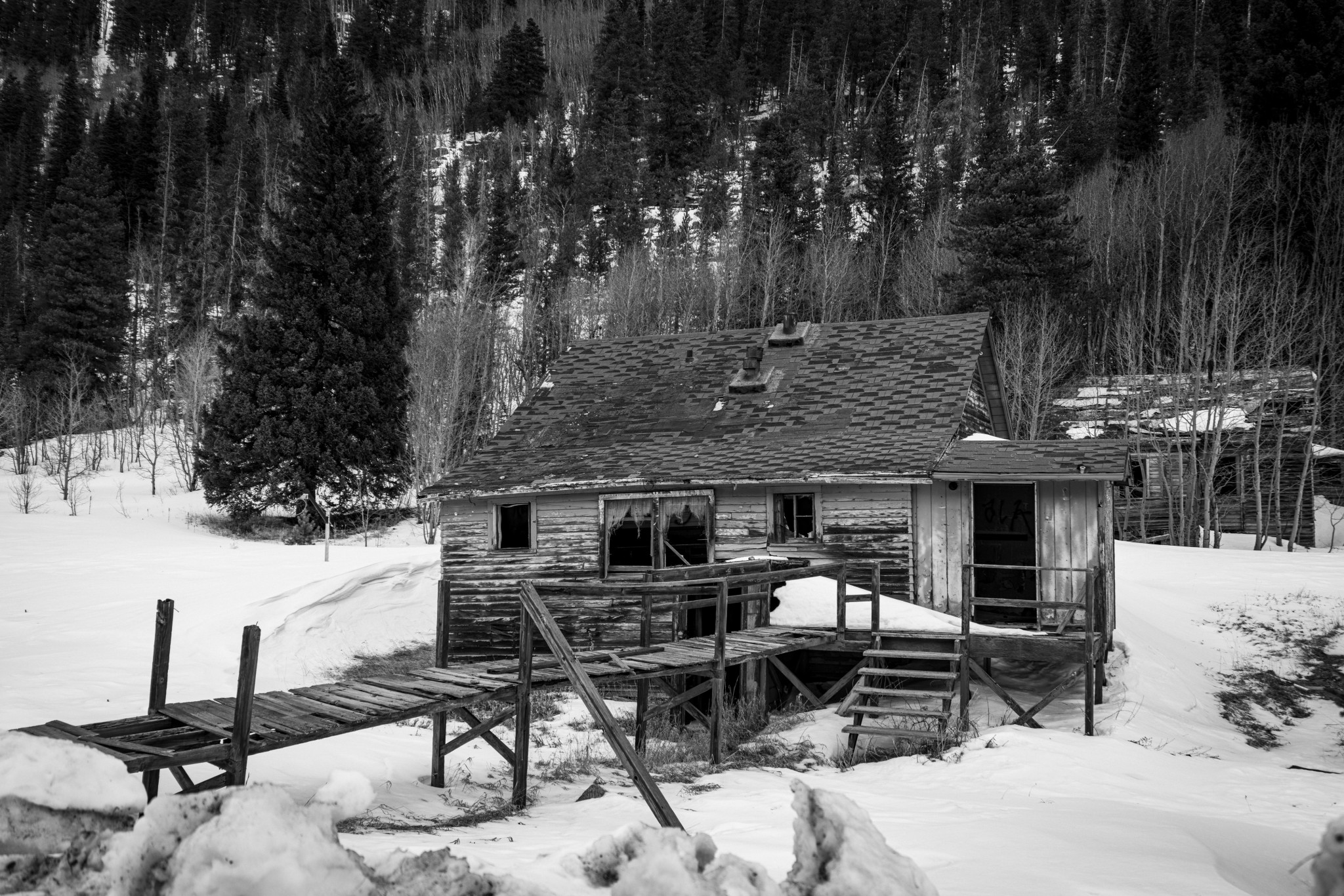 The east portal housing area was never officially a town, but is an interesting collection of buildings that have weathered harsh mountain winters for nearly 100 years.